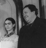 En 1939 pinto "Las dos Fridas" con el tema de una especie de doble personalidad donde una desangra a la otra; ese mismo año expone en París invitada a la galería Renón et Collea gracias a la invitación de André Breton. En 1929 contrajo matrimonio con Diego Rivera, divorciándose en 1939 y más adelante volviéndose a casar con él. A la pareja la llamaban “el elefante y la paloma”. De 1931 a 1934 vivieron en New York donde ella sufre un aborto que la sume en una gran depresión.